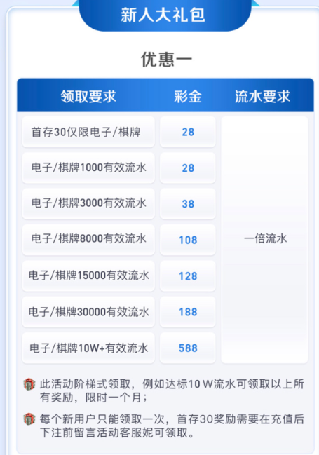 2.新人大礼包活动/棋牌电子(最高奖励1588元)