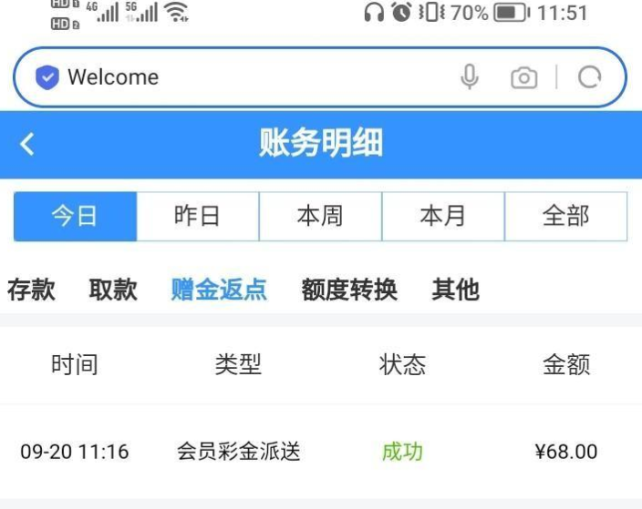 活动详情:充值过的有回归彩金,充过100,闲着去看见上面有68